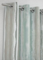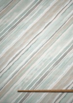 Die Gestaltung in hellen und dunklen Nuancen von Mintgrün, Graugrün und Grauoliv erinnert an die entspannte Leichtigkeit des Sommers, an einen sanften Wellengang. Die weissen Streifen und der silberne Glanz symbolisieren die Lichtreflexe auf dem Wasser. Ist der Raum mit viel Weiss und hellen Naturtönen und Holz eingerichtet, wirkt das Design besonders harmonisch. Grautöne und Accessoires aus schwarzem Metall gestalten den Raum modern.