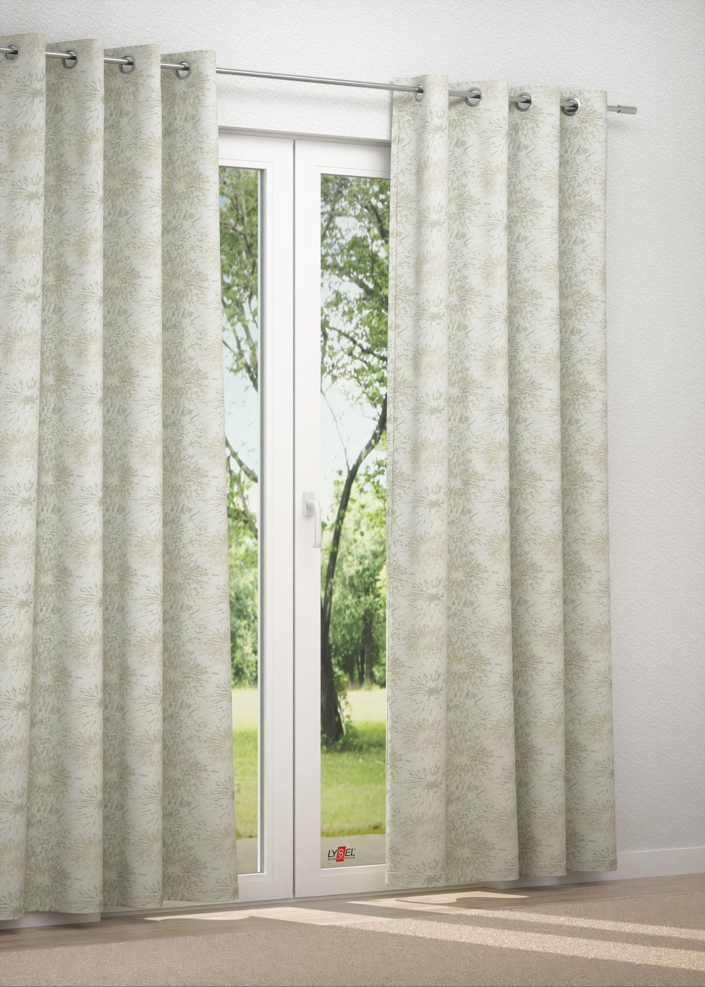 - Ein Ösenschal aus lichtdurchlässigem Stoff, 57% Polyester/ 43% Baumwolle - individuell nach Ihren Wunschmassen gefertigt.