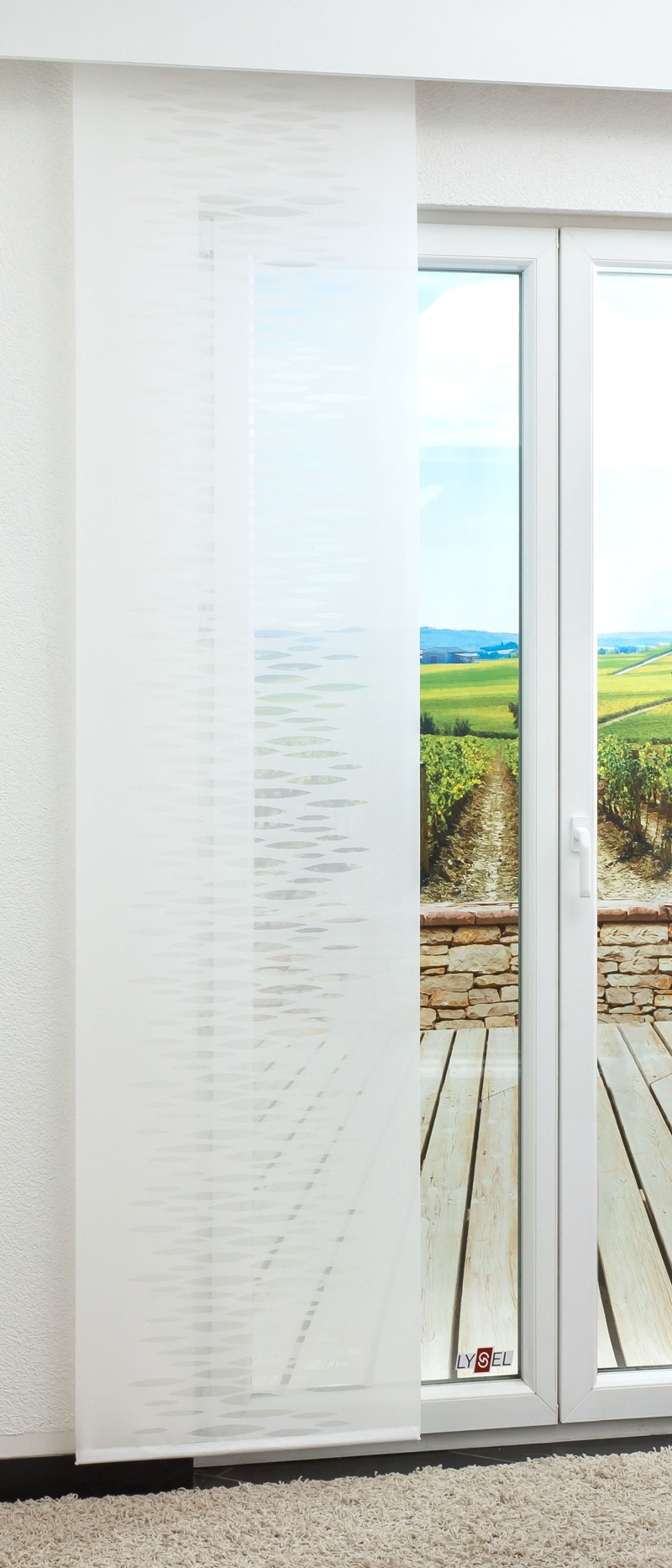 - Ein Ösenschal aus lichtdurchlässigem Stoff, 100% Polyester - individuell nach Ihren Wunschmassen gefertigt.
