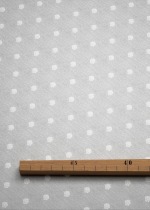 Die weissen Punkte heben sich ganz dezent von dem hellgrauen Stoff ab. Durch den leichten Schimmer verleihen sie ihm einen eleganten Look und gleichzeitig eine zurückhaltende Verspieltheit. Ein solches Wohnaccessoire lässt sich variantenreich in Szene setzen, mit tiefen Grautönen, frischem Weiss und rustikalen Möbeln ebenso wie mit zarten Pastelltönen und den Materialien Leinen, Wolle und hellem Holz.