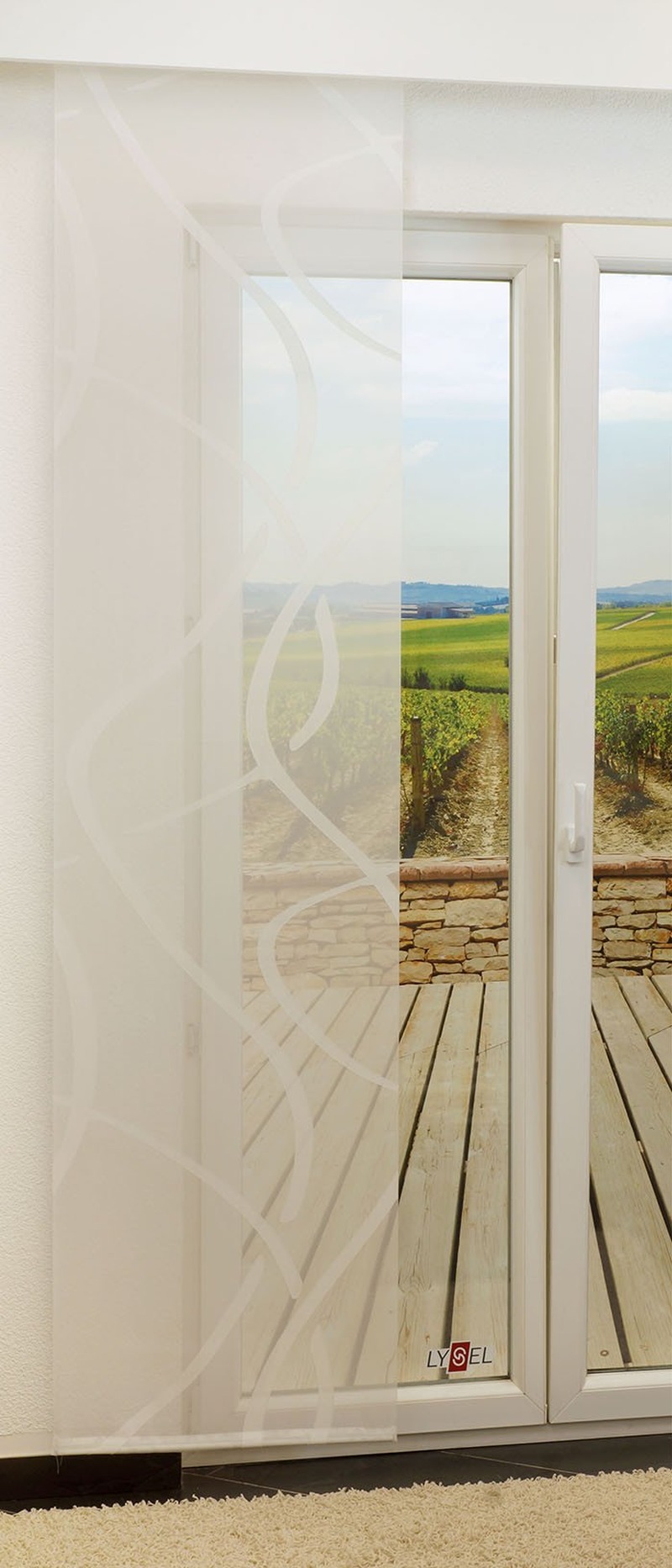 - Ein Ösenschal aus lichtdurchlässigem Stoff, 100% Polyester - individuell nach Ihren Wunschmassen gefertigt.