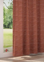 Auf diesem Stoff in einem gedämpften Rotton fühlen sich die glänzenden bordeauxroten und orangefarbenen Streifen sichtlich wohl. Eine warme und behagliche Atmosphäre erfüllt den Raum, die sich sowohl mit milden Erdfarben als auch mit verwandten Rot- und Orangetönen harmonisch ergänzen lässt. Noch wohnlicher wird es mit den Naturmaterialien Holz, Wolle, Keramik und Stein sowie Zimmerpflanzen in sattem Grün und Accessoires in warmen Metallic-Tönen.