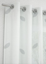 Eine angenehme Luftigkeit und eine zarte Eleganz bringt der transparente weisse Stoff in den Raum. Die Blätter in naturnahem Beige greifen den Charakter des Designs wieder auf, währenddessen sorgen die silbern glitzernden Elemente für einen stilvollen, festlichen Moment. Gedeckte Grüntöne und helle Naturfarben passen besonders gut dazu. Das Silber können Sie ebenfalls in Ihrer Deko aufgreifen.