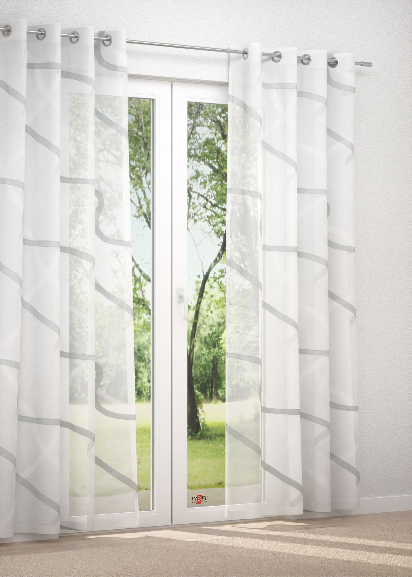 - Ein Ösenschal aus transparentem Stoff, 100% Polyester - individuell nach Ihren Wunschmassen gefertigt.