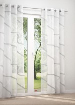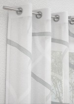 Mit aufwendiger Scherli-Technik wurde das abstrakte Muster in diesen unifarbenen Stoff eingefügt. Dabei hebt es sich aufgrund seiner plastischen Optik und der abweichenden Farbe von dem fein strukturierten Polyestergewebe ab. Breite Linien mit für diese Webart typischen ausgefransten Rändern ziehen sich durch den Stoff und lassen bei genauem Hinsehen ausserdem ein feines Streifenmuster erkennen. Das zurückgenommene, abstrakte Design liefert die Basis für die Gestaltung vieler Accessoires. Als transparente Fensterdeko macht der Stoff eine besonders gute Figur. So kommt durch ein Raffrollo oder einen Gardinenschal nach Mass viel Licht hindurch und das Ambiente wirkt offen und freundlich. Diese Produkte können Sie im Konfigurator individuell zusammenstellen, dabei neben den Massen unter anderem die Aufhängung festlegen. Als Basis für Tischwäsche eignet sich dieser Stoff ebenfalls, die Meterware erlaubt die Herstellung von Accessoires mit persönlicher Note.