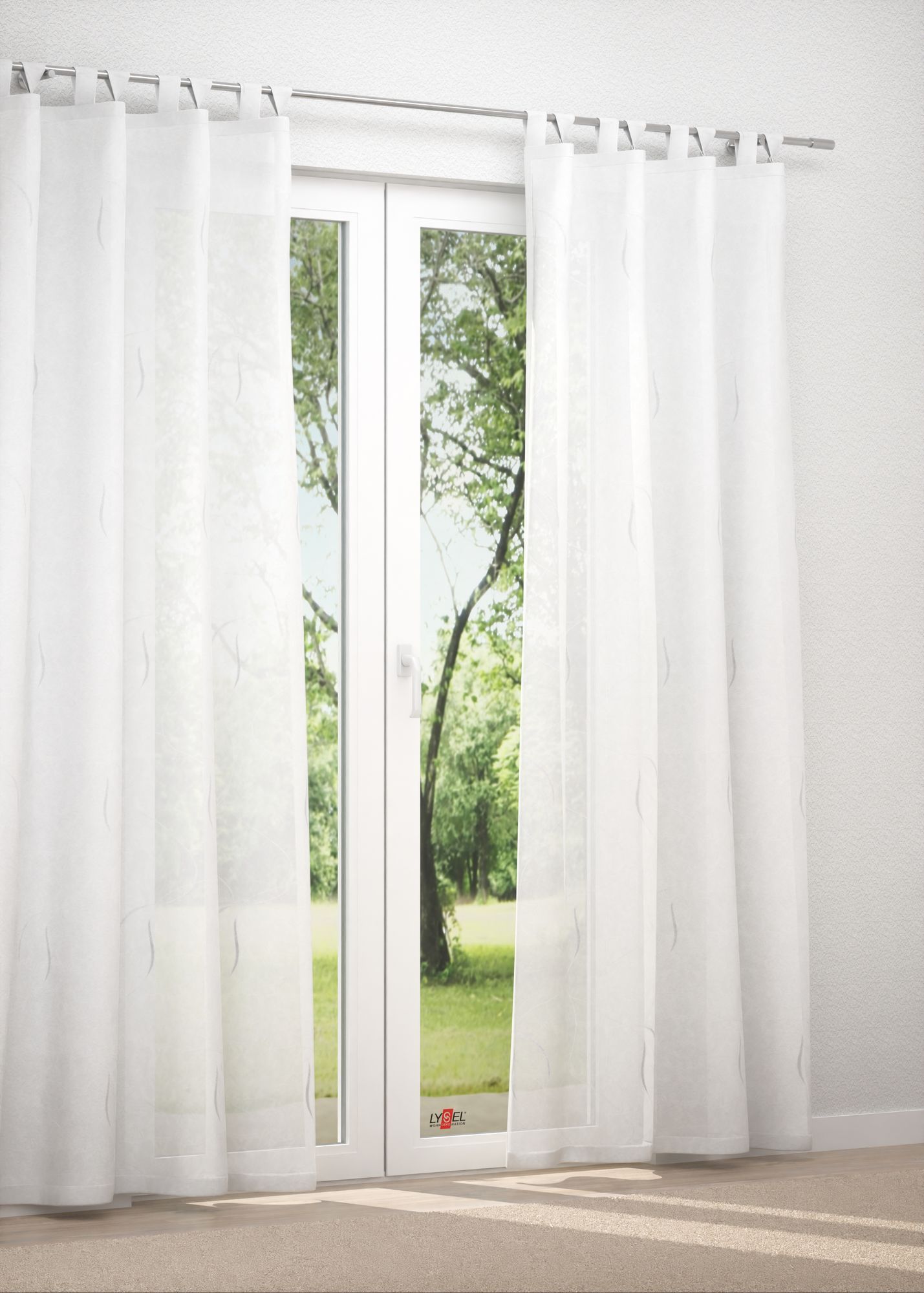 Fein und dezent wirkt dieser Voile Stoff mit reizvoller Crush-Optik und vielen glänzenden, floral geschwungenen Details. Das zarte, durchsichtige Polyestergewebe ist eine stilvolle und elegante Umrahmung, vor allem wenn es als Fensterdeko verwendet wird, bei der das eingefügte Bleiband für einen schönen Fall sorgt. Einen Gardinenschal oder ein Raffrollo können Sie im Konfigurator nach Mass zusammenstellen, dabei unter anderem die Aufhängung auswählen. Das transparente Polyestergewebe sorgt dafür, dass viel Licht in den Raum kommt, dieser offen und freundlich wirkt. Für einen geschmackvollen Tischläufer kann dieser Stoff ebenfalls verwendet werden. Die Struktur der Tischplatte bzw. die darunterliegende Tischdecke lässt er hervorkommen. Für die Umsetzung eigener kreativer Ideen bieten wir den Stoff auch als Meterware an.