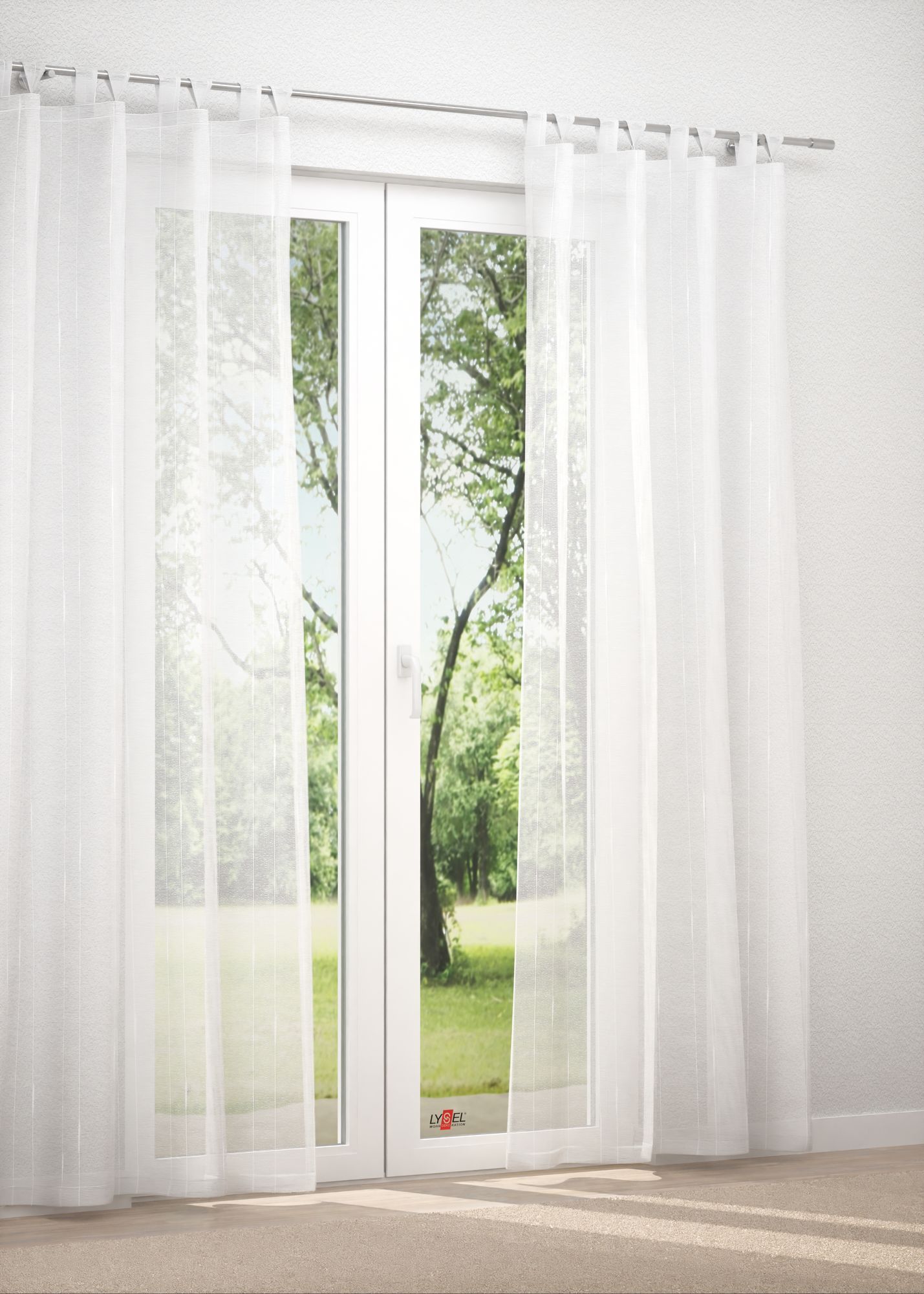 Transparente Stoffe wie dieser erscheinen locker und unbeschwert. Die hauchfeine, luftig-leichte Deko sorgt für ein Gefühl von Entspannung und Wohlbefinden, wirkt gleichzeitig wohnlich und modern. Durch das zarte, leicht schimmernde Streifenmuster präsentiert sich dieses Modell elegant, effektvoll und zeitlos. Dieser Eindruck wird durch die Beschaffenheit des Polyestergewebes unterstrichen. Es lässt viel Licht in den Raum, intensive Sonnenstrahlen erscheinen etwas milder. Das eingearbeitete Bleiband, der gesäumte Abschluss und die gesäumten Seiten sind mit verantwortlich für das schöne Erscheinungsbild. Mit diesem Dekostoff lassen sich eine Menge kreativer Ideen umsetzen. Ausserdem ist eine schonende Reinigung mit der Waschmaschine bei 30°C möglich.