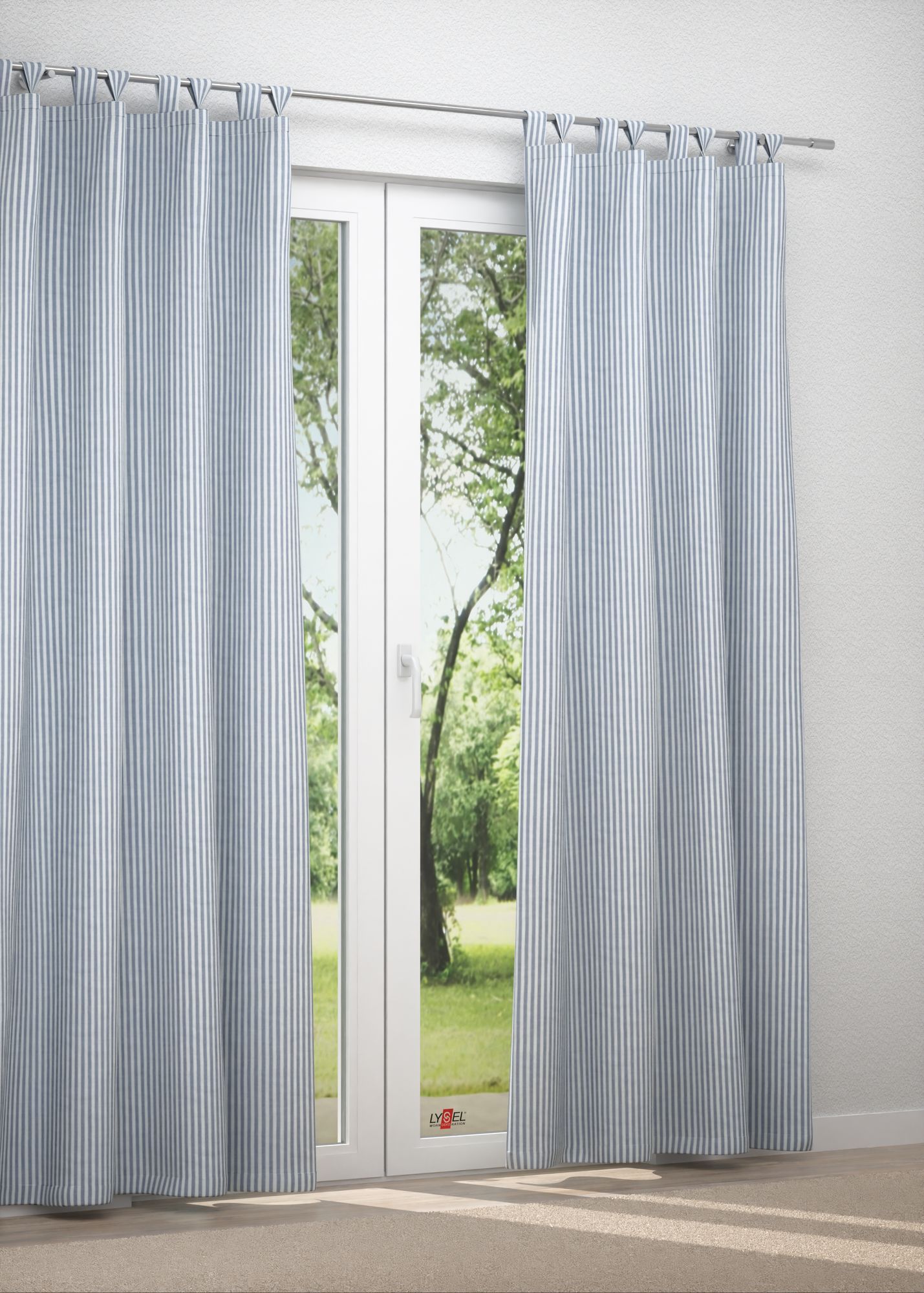 Ein Hauch von maritimem Flair kommt mit diesem blau-weiss gestreiften Dekostoff in den Raum. Die Kombination mit zeitlos-eleganten Grautönen und milden Naturfarben bietet sich hier besonders an. Accessoires aus Leinen und Baumwolle, Wohnelemente aus Korb- und Rattangeflecht sowie Accessoires aus Glas und Keramik können die unbeschwerte, luftig-leichte Atmosphäre noch unterstreichen.