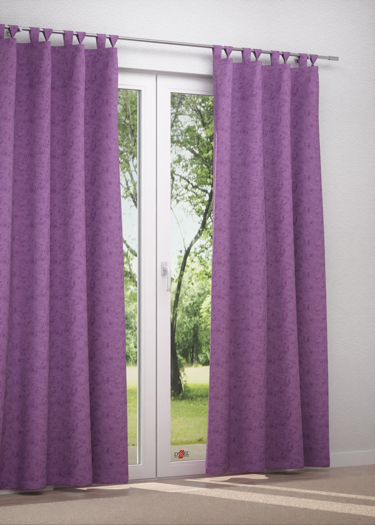 Gestaltet in betörendem Flieder bringt dieser Stoff eine einzigartige Note in den Raum. Zarte Vanille- und Cremetöne, helles Holz sowie Zimmerpflanzen in leuchtendem Grün sind hier passende Ergänzungen. Indem Sie leises Grau oder mildes Taupe verwenden, wirken Sie der lieblichen Farbe mit einer schönen Gemütlichkeit und einer zeitlosen Eleganz entgegen; Accessoires in Nachtblau, Anthrazit und Schwarz-Weiss können das Ambiente auch modern wirken lassen.
