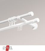 Dieses zweiläufige Gardinenstangen Set aus Metall mit offenen Trägern beinhaltet eine Innenlaufstange und eine klassische runde Gardinenstange. Ausserdem sind im Lieferumfang die Doppel-Kombiträger mit Metallmontageplatte und Befestigungsmaterial, die Klickgleiter für die Innenlaufstange und die Gardinenringe mit Gleiteinlage und Gardinenhaken für die Gardinenstange enthalten. Bei der Innenlaufstange tragen die Klickgleiter inkl. Faltenlegehaken aus Kunststoff zu einem leichtgängigen Auf- und Zuziehen der Gardinen bei und lassen sich an jede beliebige Position setzen. Fädeln Sie auf die klassische Gardinenstange die Gardinenringe mit Gleiteinlage und Haken auf; anschliessend wird die Gardine oder der Vorhang mittels Gardinenband oder Kräuselband an den Faltenhaken befestigt. Die integrierte Gleiteinlage erleichtert die Bedienung und sorgt zudem für ein nahezu geräuschloses Verschieben der Ringe auf der Stange. Die vier Endstücke sind schlicht und modern als Kappen gestaltet, werden einfach auf die Gardinenstangen aufgesetzt. Die robusten Doppel-Kombiträger besitzen als Gardinenstangen Halterung jeweils zwei halbrunde Öffnungen und dienen der Schraubmontage an der Wand. Dabei haben Sie die Möglichkeit die Gardinenstangen wahlweise mit der Öffnung nach oben oder unten anzubringen. Sie werden in die Träger eingelegt und anschliessend mit kleinen Schrauben fixiert.