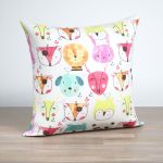 Auf dem weissen Stoff sind die Tiergesichter in allen möglichen bunten Farben zu sehen, dazwischen entdeckt man immer mal wieder abstrakt gestaltete Blätter und kleine Vögelchen, die sich auf dem Kopf eines Tieres niedergelassen haben. Bunte Farben wie Limonengrün, Hellblau, Rot, Orange und Pink lassen das Design regelrecht leuchten. Greifen Sie diese in der Dekoration auf oder sorgen Sie mit viel Weiss, rauchigen Blau- und Grautönen für Ruhe.