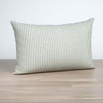 Ein Streifenmuster in Weiss und dunklem Olivgrün ziert diesen Dekostoff, der sich mit weichen Kontrasten und natürlichem Charme in das Ambiente einfügt. Helle Graunuancen, ebenso Deko-Elemente in warm glänzendem Kupfer sowie Möbel aus rötlichem Holz passen hervorragend dazu. Auch das Spiel mit verschiedenen Grüntönen kann sehr reizvoll sein. Als farbige Akzente passen auch Orange, Violett oder dunkles Blau. Mit zarten Rosé- und Nudetönen schaffen Sie ein Ambiente, inspiriert vom Scandi-Boho-Stil.