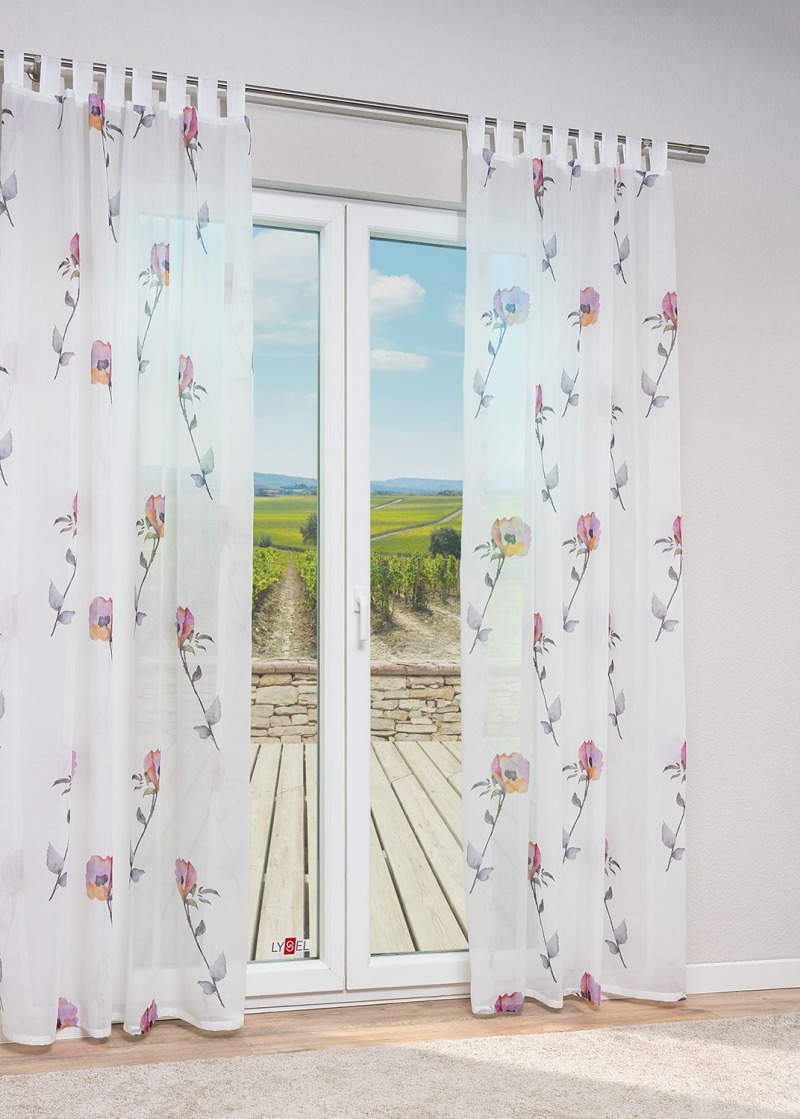 Dieser dezent schimmernde Stoff zeichnet sich durch eine natürlich wirkende Struktur aus, die an abstrakte Rosenblätter erinnern kann. Durch die unifarbene Gestaltung lässt sich ein Accessoire aus diesem Stoff vielfältig kombinieren, gleichzeitig lockert die Struktur die dezente Optik auf und verleiht dem Ambiente mehr Wohnlichkeit und Lebendigkeit. Die hochwertige Verarbeitung ist auch daran zu erkennen, dass Seiten und Abschluss des lichtdurchlässigen Stoffes gesäumt sind. Je nach Verwendung profitieren Sie hier ausserdem von dem Sichtschutz, den dieses Modell tagsüber wie nachts bietet. Um das Polyestergewebe zu reinigen, verwenden Sie den Schonwaschgang bei 30 Grad.