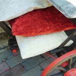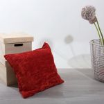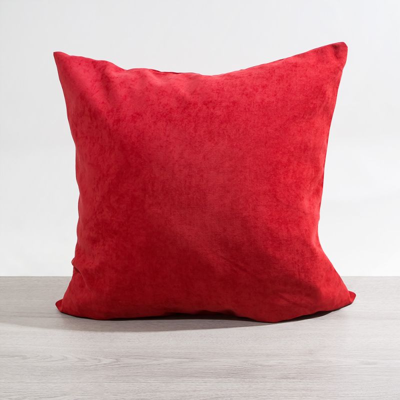 - Eine ziegelrote Kissenhülle aus 55 % Polyacryl/ 45 % Polyester ohne Inlett.