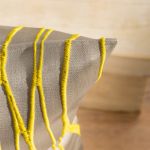 Ein strahlender Farbakzent. Dass Grau für andere Farben als echter Leuchtboost wirkt, beweist dieses Modell. Auf dem grauen Hintergrund treten die hellgelben Fäden eindrucksvoll hervor und lockern das ruhige, zurückhaltende Grau wunderbar auf. Das Zusammenspiel verschiedener Grau- und Gelbtöne, hellem Creme und rötlichem Holz wirkt hier wunderbar harmonisch.