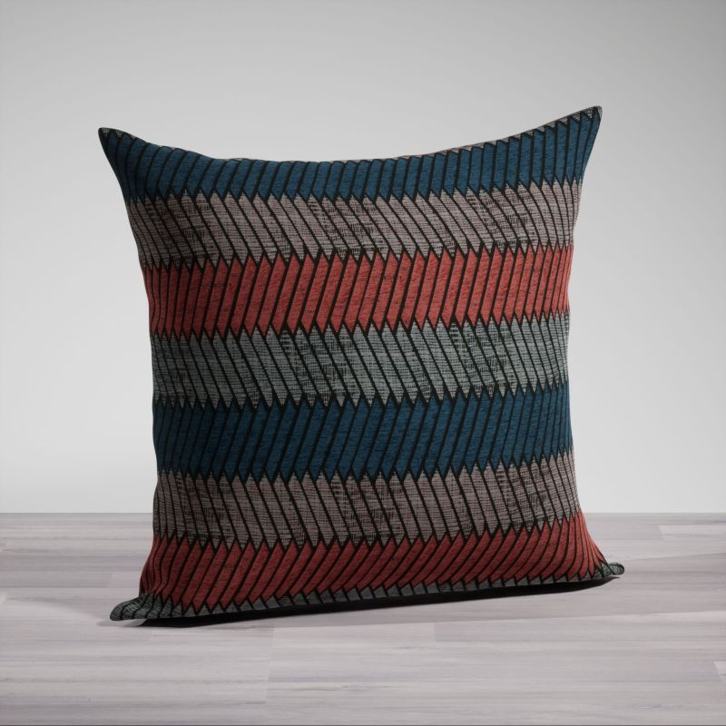 - Eine rot-graue Kissenhülle aus 59% Polyester und 41% Polyacryl ohne Inlett. Die Kissenfüllungen sind separat als Zubehör im Shop erhältlich.