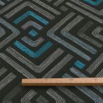 Dieser schwarze Kissenbezug ist mit Linien in verschiedenen Grautönen, Hellblau und Petrolblau verziert, wodurch das Design eine einzigartige, moderne Optik erhält. Besonders die Blautöne stechen hervor und verleihen dem Kissenbezug eine erfrischende, lebendige Note. Helle Graunuancen, frisches Weiss und verwandte Blautöne passen perfekt dazu. Warme Metallictöne wie Gold, Kupfer und Messing betonen das edle Flair.
