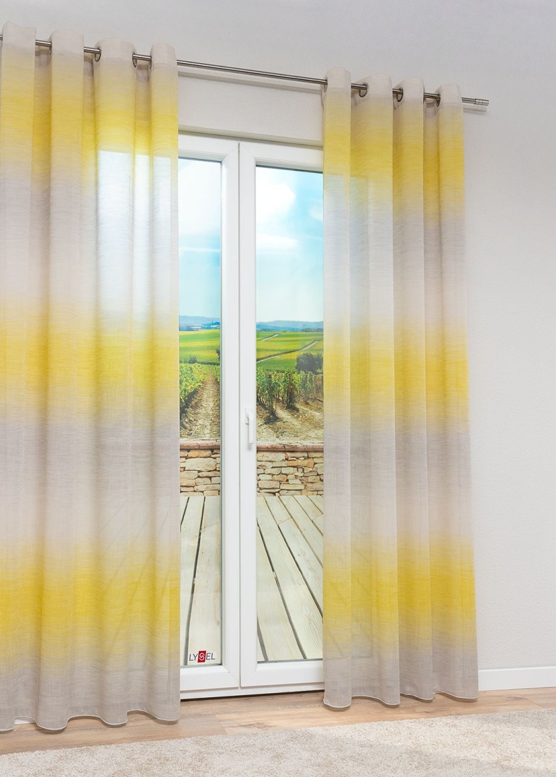 - Eine senfgelbe Kissenhülle aus 66% Polyester,34% Polyacryl ohne Inlett. Die Kissenfüllungen sind separat als Zubehör im Shop erhältlich.