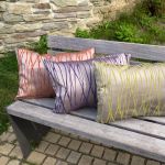 Die Stimmung der goldenen Jahreszeit lassen die orangefarbenen Fäden in Kombination mit dem taupefarbenen Stoff anklingen. Die warme, leuchtende und energetische Farbe lockt das erdige Taupe aus der Reserve und verleiht dem Ambiente Fröhlichkeit, Lebendigkeit und Harmonie. Helle Naturfarben und frisches Weiss sowie Möbel aus Bast- und Rattangeflecht passen perfekt dazu