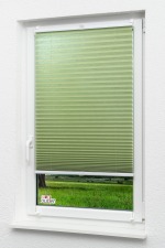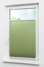 In Grasgrün ist das Plissee auf Fensterbänken mit vielen Pflanzen ein idealer Rahmen. Auch Einrichtungen die auf viel Echtholz setzen, werden hier gut ergänzt.
