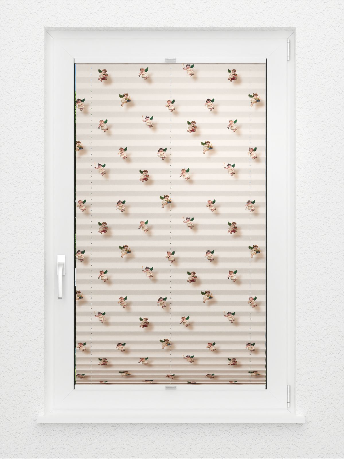 Dieses Plissee ist eine willkommene Ergänzung Ihrer Weihnachtsdekoration. Eine illustre Engelschar aus dem Erzgebirge (©Hubrig Volkskunst) verbreitet gute Laune und läutet mit Triangel, Flöte und Geschenken die wohl schönste Zeit des Jahres ein. Neben einer robusten Kreppstruktur kann der Behang mit Feuchtraumtauglichkeit glänzen. Das macht ihn universell verwendbar. Sogar ein Einsatz in Bad oder Küche ist möglich. Auch hier kann das Polyestergewebe für optimalen Schutz Ihrer Privatsphäre sorgen. Mit dem lichtdurchlässigen Material erzeugen Sie in jedem Raum ein gemütliches Flair, das Sie sowohl tagsüber als auch abends bei künstlicher Beleuchtung ungestört geniessen können. Sonnenlicht wird angenehm getönt und leicht gedämpft. Dieser Faltstore entspricht dem Öko-Tex® Standard 100. Die Robustheit des Stoffes wirkt sich nicht zuletzt auf die Pflegefreundlichkeit aus. Feuchtes Abwischen ist ebenso möglich wie die Handwäsche in Seifenlauge. Helles Beige gilt als zeitloser Ton. Ein Plissee in dieser Optik gibt sich zurückhaltend und unkompliziert. Die Farbe drängen sich nicht in den Vordergrund, sondern tönt das Fenster nur dezent.