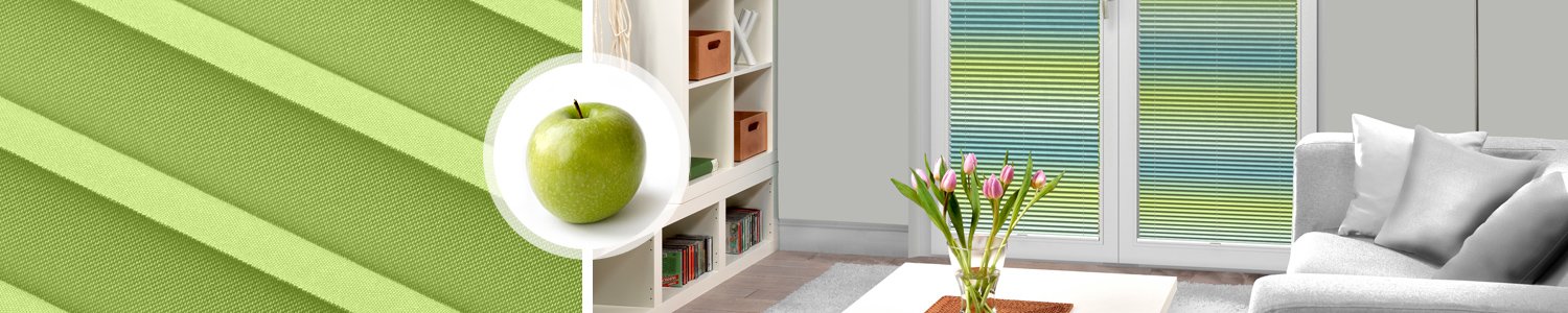 - Unsere grünen Plissees, kombiniert mit der Farbe Blau, fördern Ruhe und Entspannung