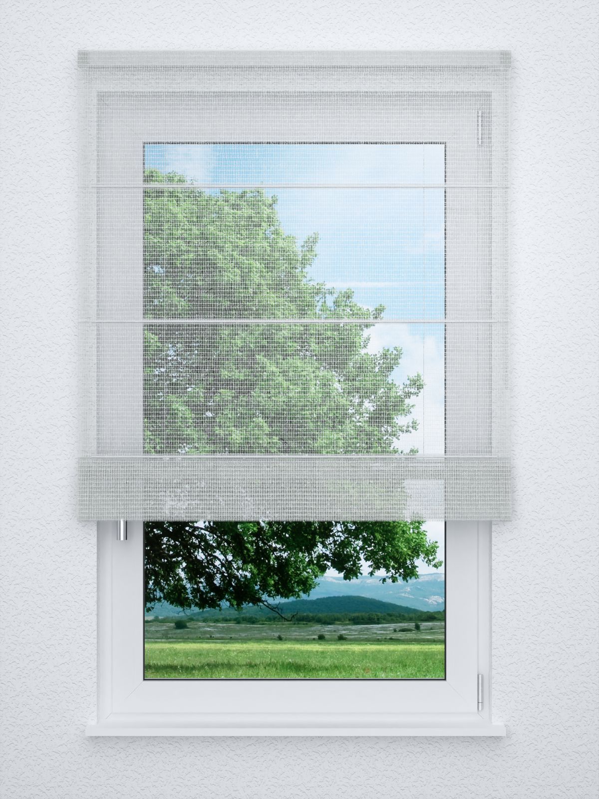 - Ein Raffrollo classic aus transparentem Stoff, 100% Polyester - individuell nach Ihren Wunschmassen gefertigt. Geliefert wird der Artikel inklusive Befestigungsmaterial.
