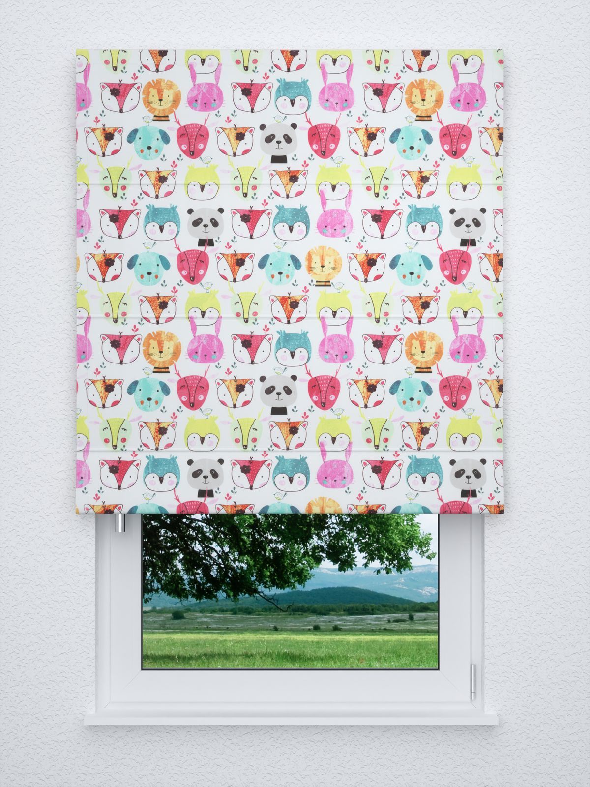 Gleichmässig aneinandergereiht schauen Ihnen hier lustige Tiergesichter entgegen. Die bunten, putzigen Tierchen sind kindlich und abstrakt gestaltet, die Farben fröhlich und einladend. Auf dem hellen Stoff kommen sie besonders gut zur Geltung. Da die Tiere, unter anderem Löwe, Hase, Hirsch, Eule, Hund und Fuchs, in ihrer Anordnung versetzt sind, entsteht ein gleichmässiges Muster, das lebendig und harmonisch zugleich wirkt. Am besten eignet sich der Stoff mit Transferdruck natürlich für Kinderzimmer-Accessoires, die zum Spielen und zur Kreativität anregen. In Form eines Gardinenschals nach Mass kann das Design seine Wirkung besonders gut entfalten. Ebenso wie ein Raffrollo können Sie diesen im Konfigurator individuell zusammenstellen. Das lichtdurchlässige Polyestergewebe bietet die perfekte Mischung aus Helligkeit und Sichtschutz. Damit Sie Ihre Accessoires auch selbst nähen können, bieten wir diesen Stoff zudem als Meterware an.