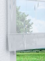 Verwenden Sie diesen transparenten Raumschmuck, sorgen Sie für eine helle und freundliche Atmosphäre. Das Interieur wirkt grösser und offener. Dazu sorgt die natürliche Gestaltung für ein entspanntes und ausgeglichenes Ambiente. Die dargestellten Gräser erinnern an Binsengewächs, wobei die Blüte bei den verschiedenen Varianten stets eine andere Farbe hat. Das gewisse Etwas machen die Blüten und Blätter aus, die sich dezent vom weissen Untergrund abheben. Diesen angenehmen Eindruck kann das durchscheinende Polyestergewebe noch unterstreichen. Da Abschluss und Seiten gesäumt sind, können Sie den Stoff vielfältig verwenden, bei Bedarf und Fantasie auch eigene Accessoires kreieren. Das eingearbeitete Bleiband sorgt in jedem Fall für ein ästhetisches Erscheinungsbild. Für die Reinigung der Dekoration empfiehlt sich der Schonwaschgang Ihrer Maschine bei 30°C.