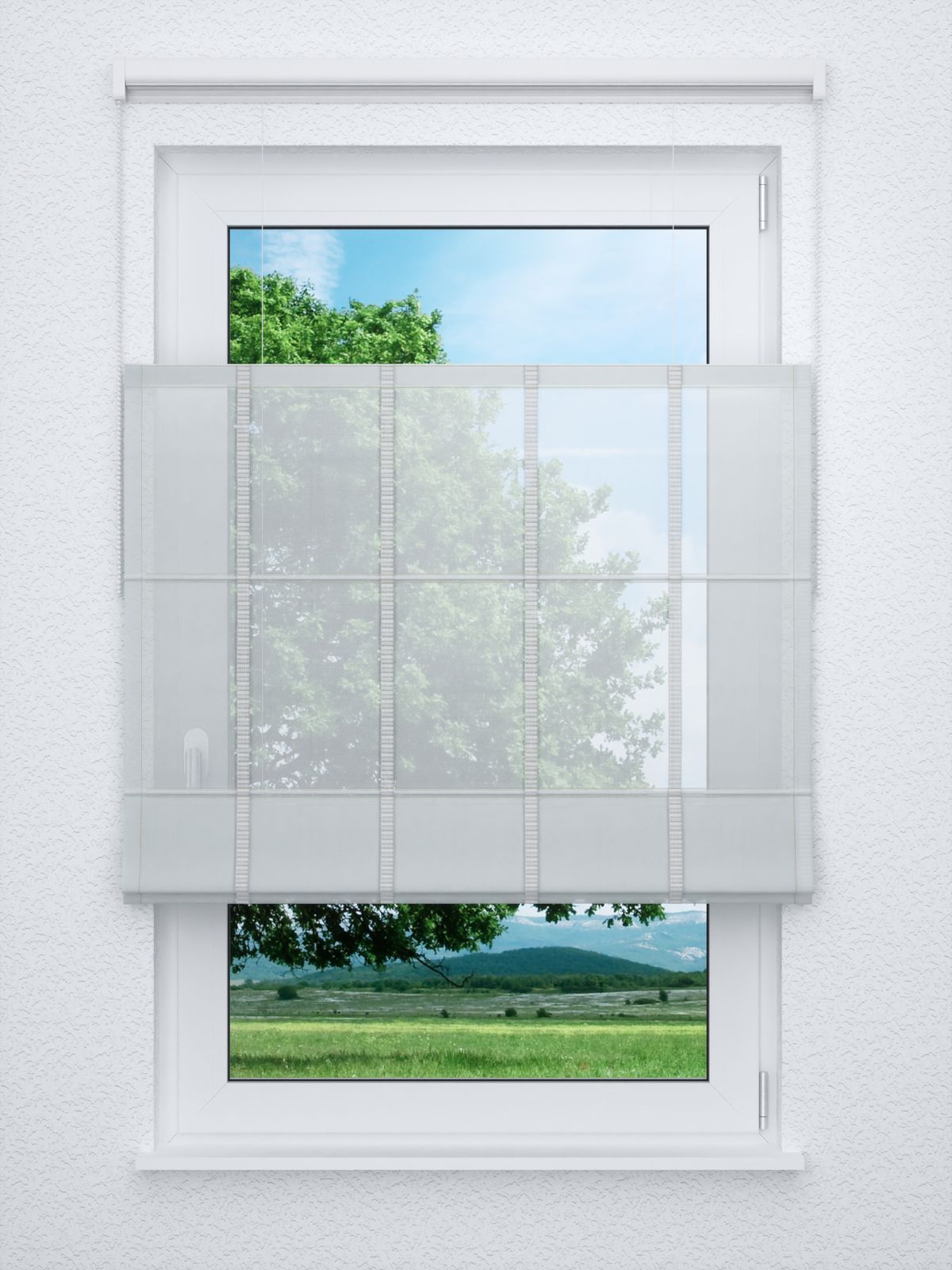 - Ein Raffrollo professional aus transparentem Stoff, 100% Polyester - individuell nach Ihren Wunschmassen gefertigt. Geliefert wird der Artikel inklusive Befestigungsmaterial.