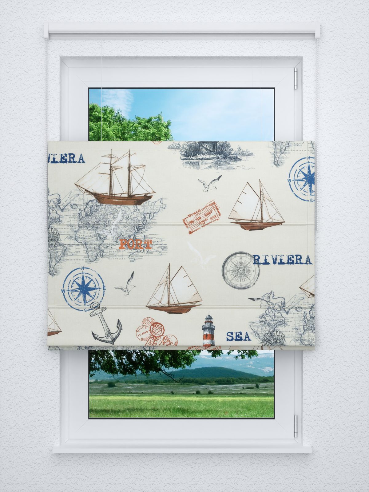 Segelboote, Möwen, Kompassnadeln, Landkarten. Das Design dieses Stoffes steht ganz im Zeichen der Seefahrt. Die raue, salzige Brise und das maritime Flair sind förmlich zu spüren. Möchten Sie auch Grösseres erreichen, die Welt erobern? Dieser Stoff inspiriert dazu, sich seine Träume zu erfüllen und nicht ewig darauf zu warten, dass sie vorbeischippern. Auf dem hellen, naturfarbenen Stoff sind die Gestaltungselemente deutlich zu sehen. Ob Sie sich daraus nun einen Gardinenschal oder ein Raffrollo nach Mass gestalten oder lieber Ihre Accessoires selbst nähen, steht Ihnen frei. Eines ist jedoch klar: Als Fensterdeko macht der glatte, weiche herabfallende Stoff eine besonders gute Figur. So bietet das lichtdurchlässige Polyestergewebe die perfekte Mischung aus Helligkeit und Sichtschutz. Letzterer ist tagsüber genauso wie nachts gegeben.