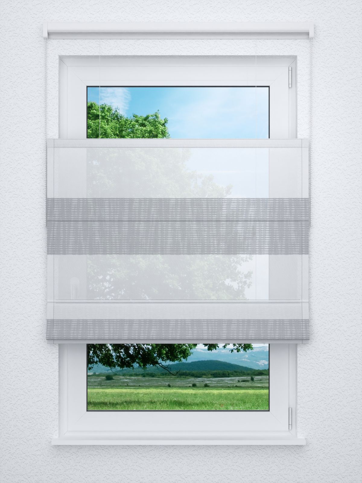 - Ein Raffrollo professional aus transparentem Stoff, 100% Polyester - individuell nach Ihren Wunschmassen gefertigt. Geliefert wird der Artikel inklusive Befestigungsmaterial.
