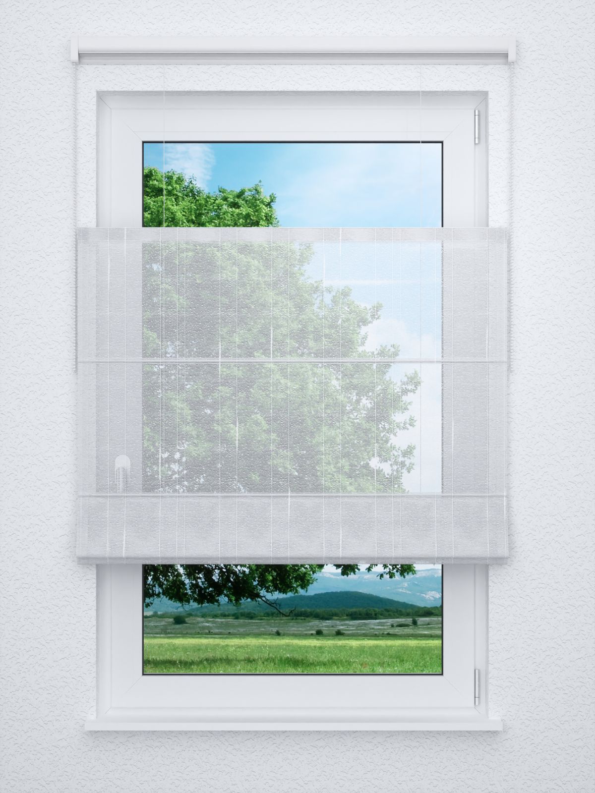 - Ein Raffrollo professional aus transparentem Stoff, 100% Polyester - individuell nach Ihren Wunschmassen gefertigt. Geliefert wird der Artikel inklusive Befestigungsmaterial.