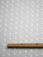 Die weissen Punkte heben sich ganz dezent von dem hellgrauen Stoff ab. Durch den leichten Schimmer verleihen sie ihm einen eleganten Look und gleichzeitig eine zurückhaltende Verspieltheit. Ein solches Wohnaccessoire lässt sich variantenreich in Szene setzen, mit tiefen Grautönen, frischem Weiss und rustikalen Möbeln ebenso wie mit zarten Pastelltönen und den Materialien Leinen, Wolle und hellem Holz.