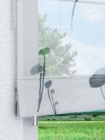 Highlight dieses Stoffes sind ganz klar die per Digitaldruck aufgebrachten Blüten. Diese heben sich durch ihre dunkle Gestaltung kontraststark von dem hellen Stoff ab. Die länglichen Ellipsenformen wirken künstlerisch und wie mit Aquarelltechnik aufgetragen. Durch die Schattierungen wirkt das Design weniger clean und puristisch, vielmehr natürlich und lebendig, besonders dann, wenn der Stoff als Fensterdeko verwendet wird. Die Leichtigkeit des transparenten Polyestergewebes trifft auf eine moderne Gestaltung, die imposant wirkt und alle Blicke auf sich zieht. Ob Gardinenschal oder Raffrollo nach Mass, es gelangt viel Licht ins Zimmer, wodurch dieses optisch an Grösse und Offenheit gewinnt. Zusätzlich beeindruckt der weiche, fliessende Fall, der vor allem durch die feine Fadenstruktur und das leichte Gewebe zustandekommt. Dieser Stoff kann sich als Basis vieler Accessoires wiederfinden, auch als aussergewöhnlicher Tischläufer. Die Meterware erlaubt es Ihnen, das Muster auf mehrfache Weise aufzugreifen und ein harmonisches Gesamtbild entstehen zu lassen.