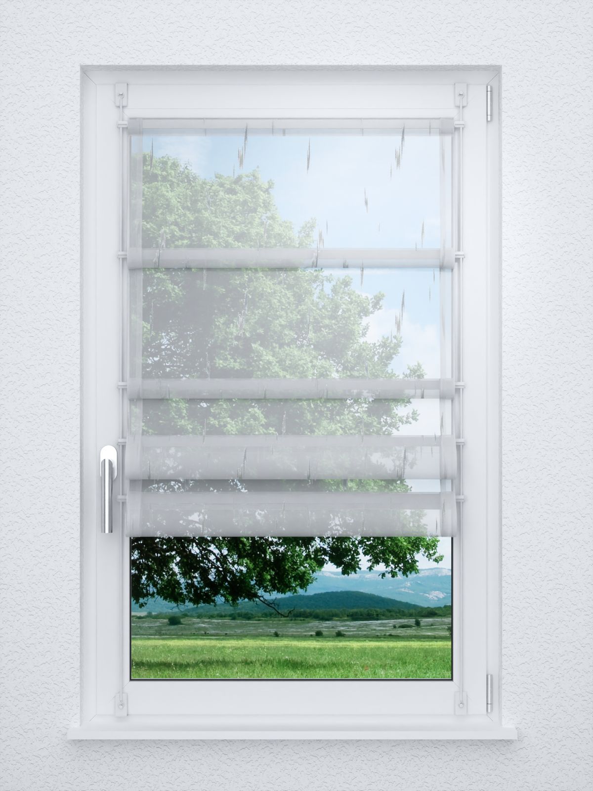 - Ein Raffrollo smart aus transparentem Stoff, 100% Polyester - individuell nach Ihren Wunschmassen gefertigt. Geliefert wird der Artikel inklusive Befestigungsmaterial.