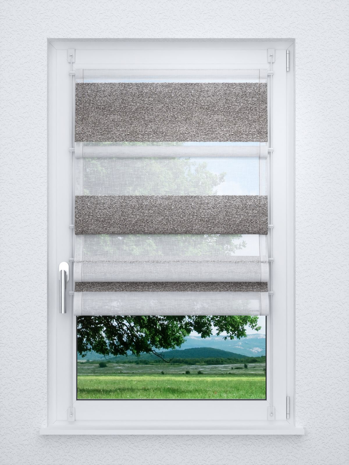 - Ein Raffrollo smart aus transparentem Stoff, 100% Polyester - individuell nach Ihren Wunschmassen gefertigt. Geliefert wird der Artikel inklusive Befestigungsmaterial.