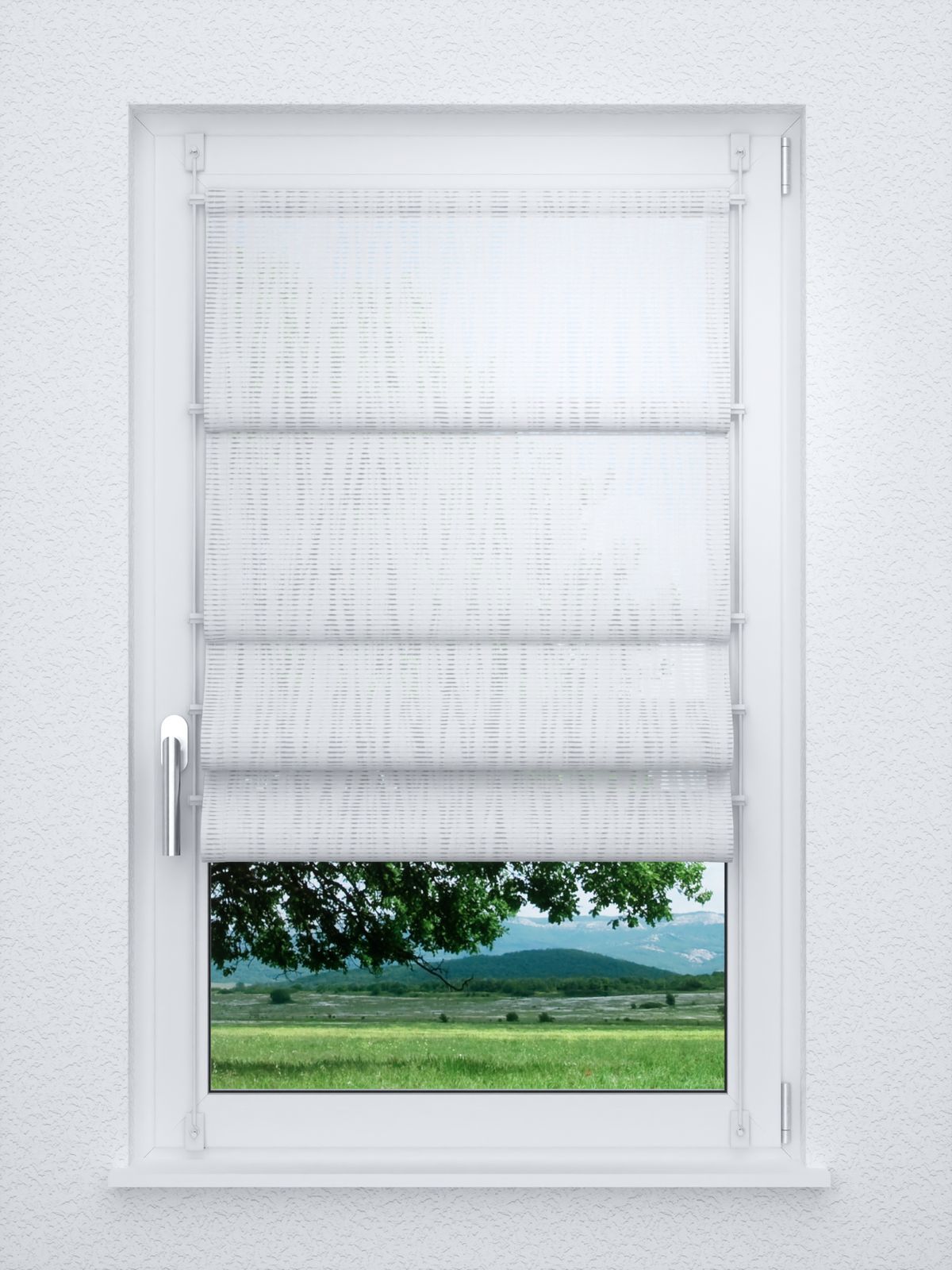- Ein Raffrollo smart aus transparentem Stoff, 100% Polyester - individuell nach Ihren Wunschmassen gefertigt. Geliefert wird der Artikel inklusive Befestigungsmaterial.
