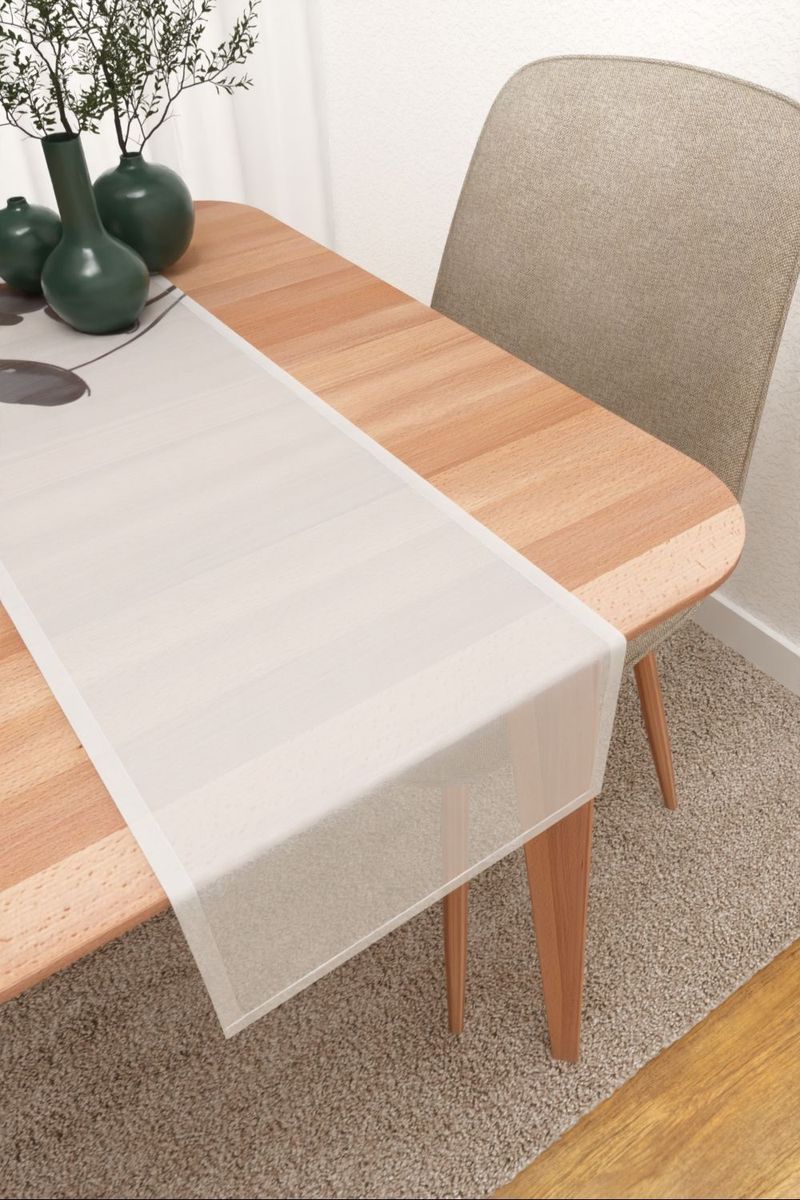 Highlight dieses Stoffes sind ganz klar die per Digitaldruck aufgebrachten Blüten. Diese heben sich durch ihre dunkle Gestaltung kontraststark von dem hellen Stoff ab. Die länglichen Ellipsenformen wirken künstlerisch und wie mit Aquarelltechnik aufgetragen. Durch die Schattierungen wirkt das Design weniger clean und puristisch, vielmehr natürlich und lebendig, besonders dann, wenn der Stoff als Fensterdeko verwendet wird. Die Leichtigkeit des transparenten Polyestergewebes trifft auf eine moderne Gestaltung, die imposant wirkt und alle Blicke auf sich zieht. Ob Gardinenschal oder Raffrollo nach Mass, es gelangt viel Licht ins Zimmer, wodurch dieses optisch an Grösse und Offenheit gewinnt. Zusätzlich beeindruckt der weiche, fliessende Fall, der vor allem durch die feine Fadenstruktur und das leichte Gewebe zustandekommt. Dieser Stoff kann sich als Basis vieler Accessoires wiederfinden, auch als aussergewöhnlicher Tischläufer. Die Meterware erlaubt es Ihnen, das Muster auf mehrfache Weise aufzugreifen und ein harmonisches Gesamtbild entstehen zu lassen.