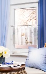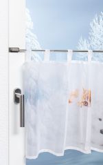 - Eine transparente Scheibengardine aus 100% Polyester.