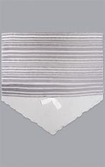 Auf diesem aussergewöhnlichen Scheibenhänger wechseln sich helle und dunkle Streifen ab und zieren mit diesem kontraststarken Muster die gesamte Fläche des Stoffes. Lediglich der untere, spitz zulaufende Abschluss ist dem transparenten Gewebe in Weiss vorbehalten. Im Verhältnis zum Scheibenhänger an sich ist der Abschluss verhältnismässig lang und zudem an den Seiten leicht gewellt. Eine dekorative Schleife kennzeichnet den Übergang. Zur Aufhängung dieser klassischen Fensterdeko im modernen Design dient ein Tunnelzug. Der hauchfeine Polyesterstoff ist durchsichtig und lässt daher viel Licht in den Raum, wodurch dieser optisch grösser, freundlich und offen wirkt. Für die Reinigung empfiehlt sich der Schonwaschgang bei 30 Grad.