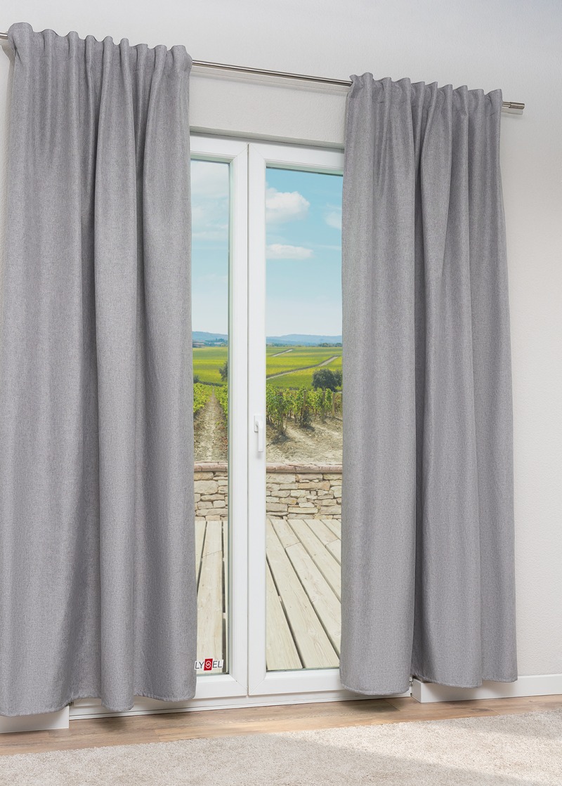- Ein unkonfektionierter Dekostoff in silbergrau, ohne Bleiband.