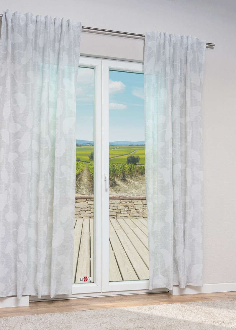 Mit der aufgebrochenen Gitternetzstruktur setzt dieses Modell moderne Akzente und sorgt für eine lebendige Dynamik. Das silberne Muster auf dem ansonsten unifarbenen Untergrund aus Polyester und Polyacryl weist einen leichten Schimmer auf, haucht diesem Accessoire dadurch stilvolle Eleganz ein. Zimmerdeko aus dem durchlässigen Mischgewebe bietet den perfekten Kompromiss zwischen Tageslicht und Sichtschutz. Eine solche Deko trägt in Ihrem Zuhause zu einem offenen und einladenden Raumcharakter bei. Abschluss und Seiten sind bei diesem Modell gesäumt. Das gibt Ihnen die Möglichkeit, eigene Accessoires zu kreieren. Ihrem Einfallsreichtum sind dabei keine Grenzen gesetzt. Zur Reinigung des Raumschmucks können Sie den Schonwaschgang der Waschmaschine bei 30°C benutzen.