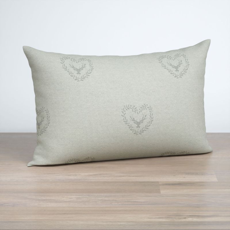 Der Dekostoff in Beige bildet die perfekte Umrahmung für das natürliche Design mit Hirsch, Herzrahmen und Blattranke. Der milde und freundliche Beigeton strahlt eine sanfte Wärme, gleichzeitig einen gediegenen Charme und eine behutsame Eleganz aus. Dunkle Rottöne, frisches Grün und Accessoires in Hellgrau und Reinweiss passen perfekt dazu.