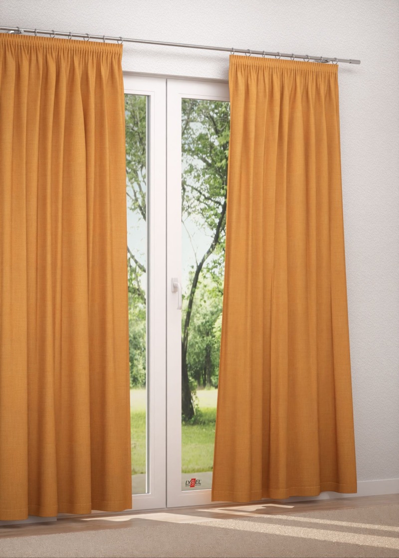 - Ein unkonfektionierter Dekostoff in gelb, ohne Bleiband.