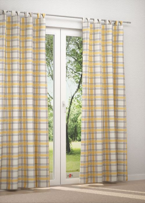 Dieser abwechslungsreich gestaltete, karierte Stoff überzeugt neben seinem Design auch durch seine vielfältigen praktischen Eigenschaften. Seiten und Abschluss sind gesäumt, das Gewebe ist lichtdurchlässig und blickdicht. Eine moderne Note erhält das Modell durch die unterschiedlich grossen Streifen und Rechtecke, die vertikal und horizontal übereinandergelegt sind. Der Stoff setzt sich aus Polyester und Polyacryl zusammen und lässt sich schonend bei 30 Grad reinigen.