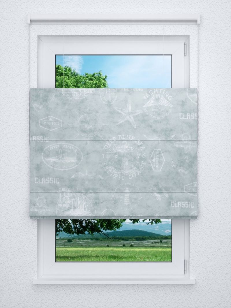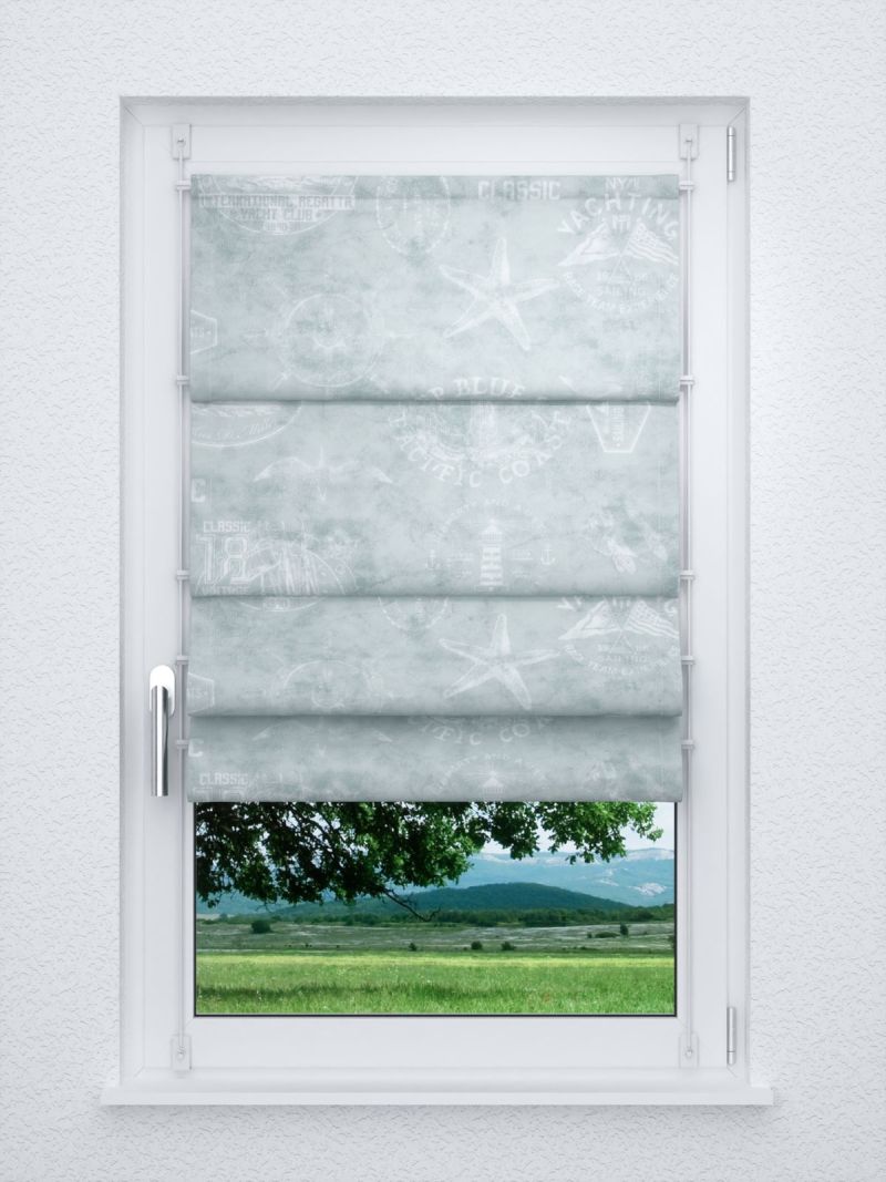 Der marmorierte, leinenähnliche Stoff mit griffiger Haptik und grober Struktur ist die perfekte Basis für das maritime Design. Auch wenn der Hintergrund an die tosende See erinnern kann, die grossen Symbole, etwa Möwen, Anker, Steuerräder, Schriftzüge, Flaggen und Schilder, heben sich durch die einheitliche Gestaltung sanft, aber wirkungsvoll von dem Hintergrund ab und sorgen für ein leichtes, unbeschwertes Flair im Raum. Dabei kann dieses Polyestergewebe die Grundlage für die verschiedensten Arten von Accessoires sein, etwa Kissenbezüge, Tischdecken oder Sicht- und Sonnenschutz am Fenster. Sie können diese selbst nähen oder unseren Konfigurator nutzen, der ebenfalls viel Gestaltungsfreiheit bietet. Als Gardinenschal oder Raffrollo nach Mass am Fenster befestigt lässt der Stoff mildes Licht hindurch, gleichzeitig bleibt Ihre Privatsphäre gewahrt. Selbst abends bei eingeschalteter Beleuchtung sind von aussen höchstens grobe Konturen wahrnehmbar.
