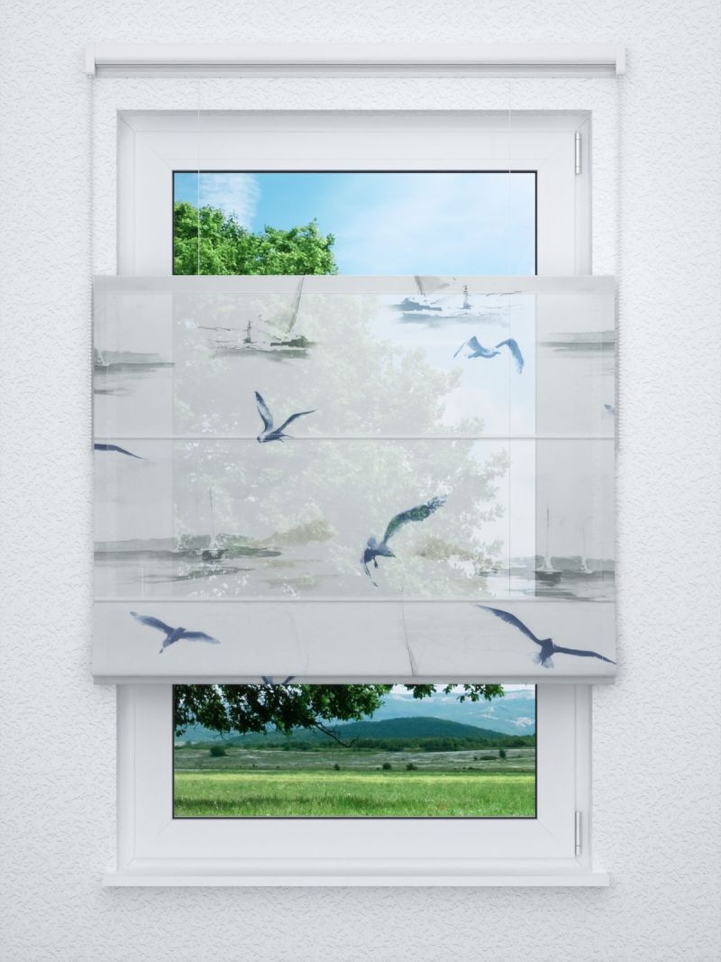Dieser unkonfektionierte transparente Dekostoff kann die Basis für die verschiedensten Arten von Heimtextilien sein, zum Beispiel Gardinenschals und Raffrollos. Am Fenster ist das leicht strukturierte Polyestergewebe eine geschmackvolle Ergänzung des Interieurs. Das abstrakte Design scheint von der Natur inspiriert, es lässt einen Schwalben-ähnlichen Vogel und eine Baumrinde erkennen. Die Schattierungen können an Aquarell- oder Wasserfarbentechnik erinnern, die Schattierungen und Farbübergänge wirken ruhig und lebendig zu gleich. Das durchsichtige Gewebe lässt viel Licht in den Raum, dieser wirkt offen, einladend und freundlich. Der Dekostoff mit Naturmotiv besteht aus 100 % Polyester und kann bei 40°C im Schonwaschgang gereinigt werden.