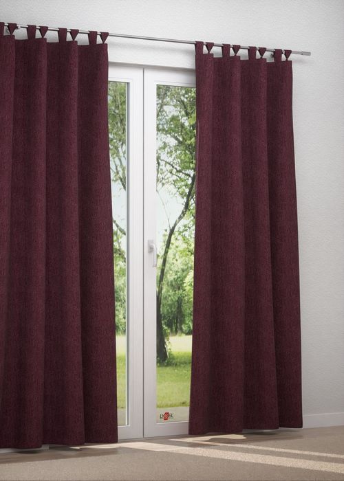 - Ein unkonfektionierter Dekostoff in aubergine, mit Bleiband.