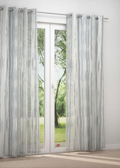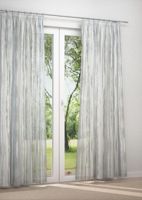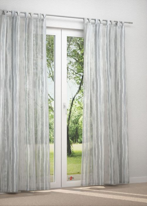 Dieser transparente Stoff wirkt so, als würde er aus Seide bestehen. Zunächst scheint er mit einem klassischen Streifenmuster versehen, dann erschliesst sich der Clou des Designs. Harmonisch und fliessend heben sich die Übergänge der Längsstreifen farblich voneinander ab. Die Knitteroptik bewirkt eine spürbare Lebendigkeit und eine Deko aus diesem Stoff avanciert zum optischen Highlight des Raumes. Seiten und Abschluss des Stoffes sind gesäumt. Reinigen lässt sich das Polyestergewebe schonend bei 30 Grad.